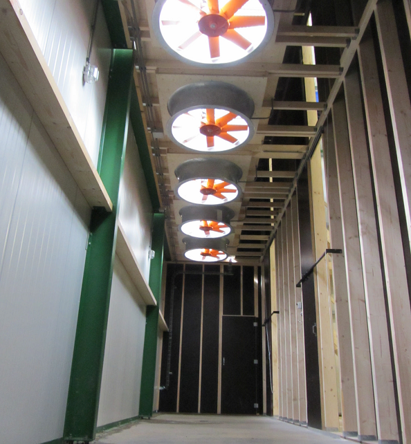 压力舱内部可安装多台轴流风机.。每两排相邻木箱自然形成的风道起始端可以用长方形的风道门进行封堵。这种设计可以让您集中所有风量鼓如最需要通风的风道。